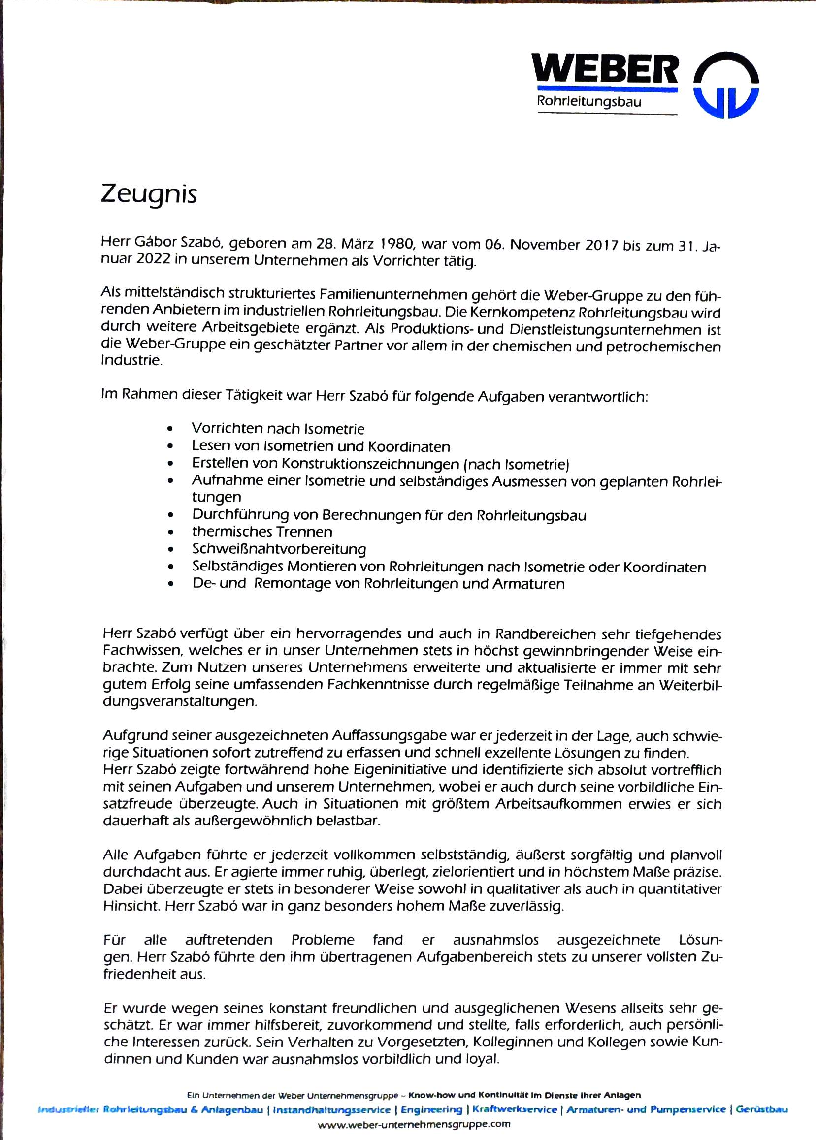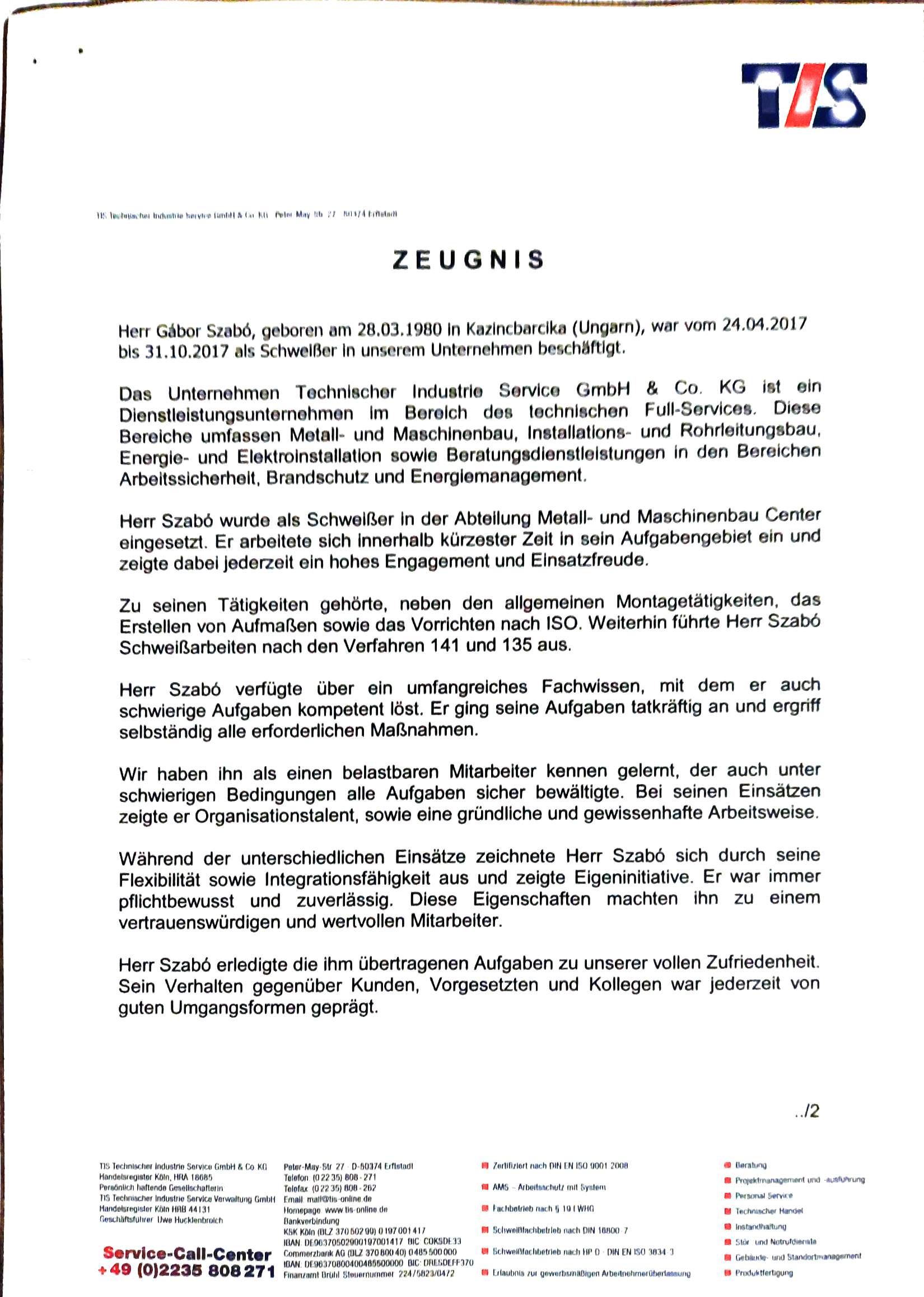 - Legutóbb Németországban, a Henkel düsseldorfi telephelyén dolgoztam 2013-tól 2022-ig. Hegesztési munkáimon túl feladataim közé tartozott a folyamatos kapcsolattartás a gyártó- és termelőüzemekkel, a munkálatok szervezése és kivitelezése.